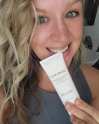 “I have finally found a sunscreen that does it all. The Luxe Soleil blends so beautifully into my skin and gives me coverage all day long. I mix it with the pearl glow drops and a little bit of concealer to give me a healthy foundation free glow. I feel like I have finally found the holy grail of sunscreens with this beauty.”